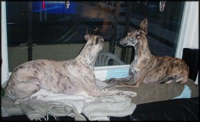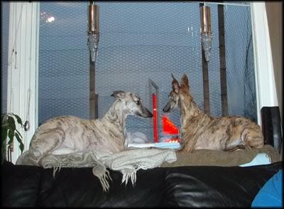Grabbarna ligger o spanar ut genom vardaxrumsfönstret. Bortskämda