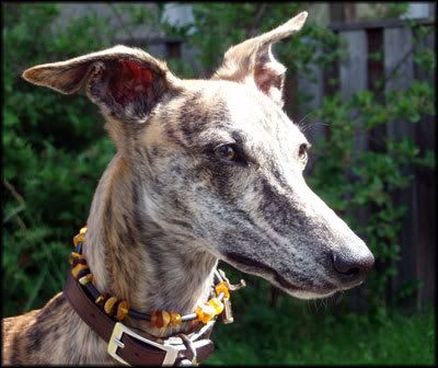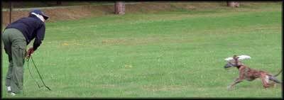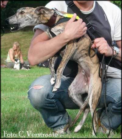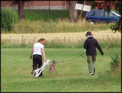 Viper.. ehh, jaaa.. han fattade ju inte riktigt vitsen med det där såklart... haha, han råkkade runt med diverse andra hundar... Afghan, Saluki, några IG + lite whippar såklart. Den stora Varghunden va lite läskig... tror inte Fjant har sett en så stor hund förut... haha. Viper o Ninja försökte busa medans stackars Nemi blev intrasslad.