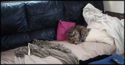 I söndax märkte jag att Flamman återigen fått ena analsäcken inflammerad! Damn! *sväära* Ringde t vetten o fick en tid till måndag e.m. Hon var ju inte så glad precis så jag bäddade in henne i duschen - där hon valt att parkera sig, o lät henne vara ifred. Det känns ju jättehemskt att inte kunna göra så mkt när de har ont kritterna men man vet ju att det inte är dödligt iaf.