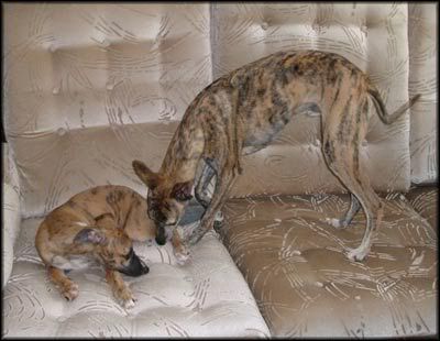 Vi åkte iväg till Sussie o Stefan för att hälsa på hela grabbgänget med sju whippetkillar. Jodå, det var fullt ös i dagarna två. Viper o halvbrorsan TinTin fann varandra direkt, inte så konstigt - det skiljer väl bara en månad mellan dem i ålder.