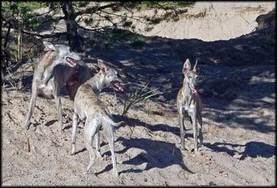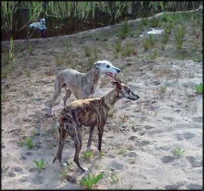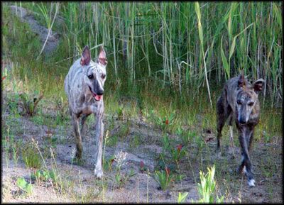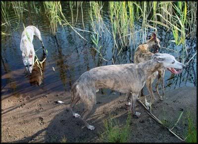 Stefan tog med oss, TinTin, Sim o Viper till grusgropen så de fick springa o plaska lite i pölen. Full rulle!! Hehe, t.om farbror Sim tog sig några rejäla svängar i full fräs.