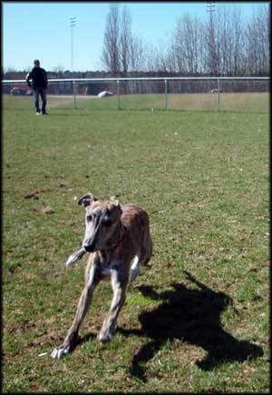 Väl där träffar vi en kille me världens coolaste blandistik - mellan Schäfer/Greyhound. Hon var bara så störtfrän! Snabbare än man kunde tro när man såg henne. Först i början var det ju en hel del tokrusande men faktiskt visade det sig att Vippe kan ta d lugnt i närvaro av en annan hund, imponerande. Det hade inte gått för någon månad sen.