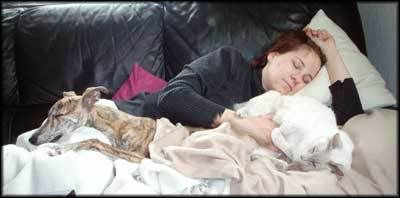 Klumpedumpe är snart bannlyst från sängen! Jag är ju så van vid att katterna kommer å går i sängen o byter ställningar o lägger sig lite här o där.. de är smidiga o märks knappt... Men inte att ett benrangel t whippet kommer klampande o dunsar ner lite hur som helst... Smidig är han inte! Sen ska han ju såklart helst ligga under mattes täcke åxå - det blir inte alls varmt... neeejdå! *ironi*