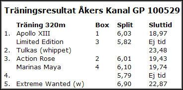 Yepp, så har det då varit dags för grabbarna att träna PÅ RIKTIGT för första gången - dvs gå ur box på 320.