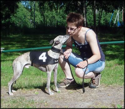 Nu återstår "bara" att försöka jaga tag på tillräckligt långsamma och bra stödhundar för hans licenslopp - helst ska han få gå 2 licenslopp då han aldrig har sprungit med annan hund förut. Men vi får väl se vilken tur vi har att få tag på whippar.